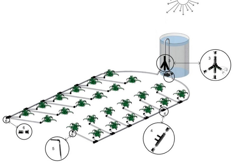 Преимущество системы капельного полива с автоматикой еще в том, что за счет наличия насоса, резервуар с водой не обязательно ставить на возвышенность.
